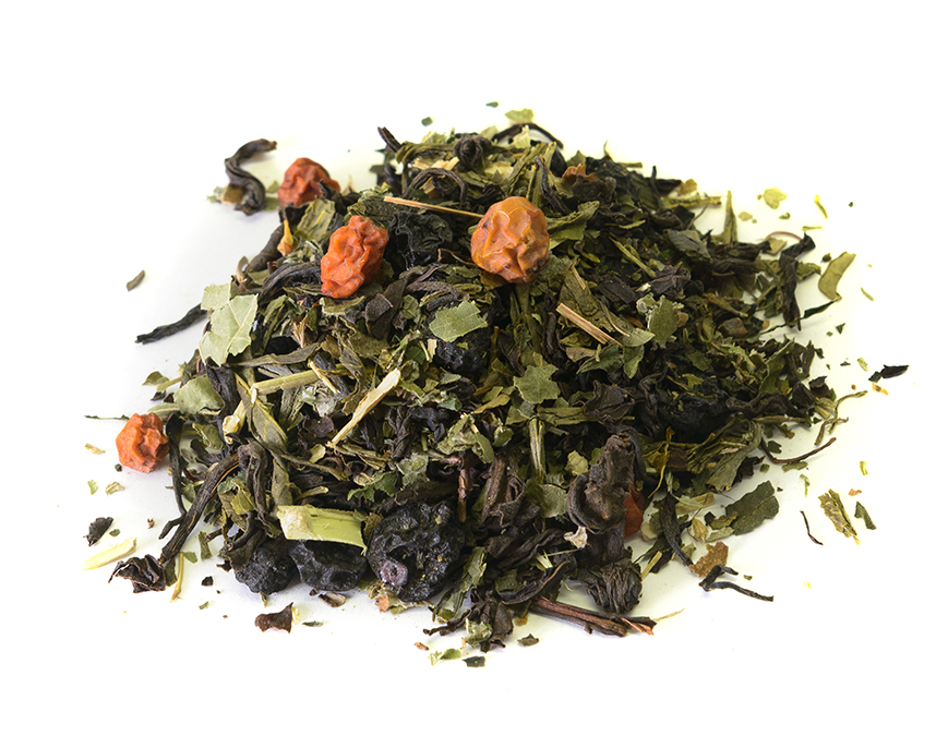 Купаж черного чая / Сенча / Листья смородины / Листья земляники / Мята / Крапива / Ягоды рябины / Ягоды смородины / Ягоды черноплодной рябины / Чабрец / Липа